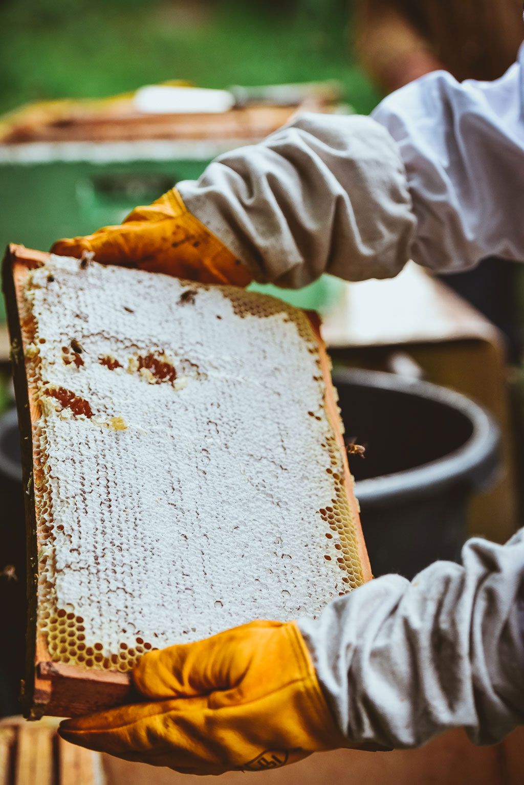 Ich hatte das Glück und durfte bei der Honigernte auf Gut Farve dabei sein und nicht nur Fotos aufnehmen, sondern auch den ganz, ganz frischen Honig direkt aus der Wabe kosten. Spoiler: KÖÖÖSTLICH! Und das allertollste, Du kannst auch in ebendiesen Genuss kommen, denn zwei Gläser Honig darf ich verlosen…dazu später mehr.
