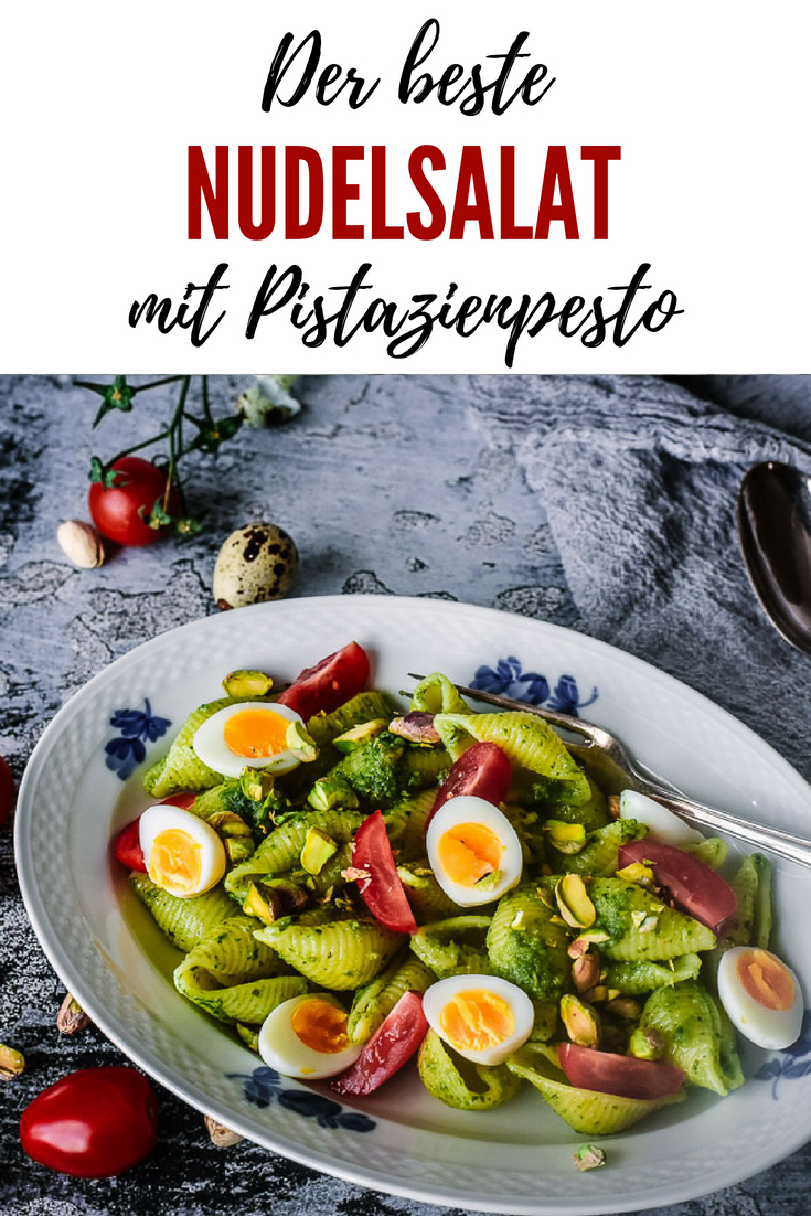 Es ist Sommer und die Grill- und Picknicksaison ist eröffnet. Was darf da nicht fehlen? Genau, Nudelsalat…noch genauer Nudelsalat mit Pistazienpesto und Wachtelei.