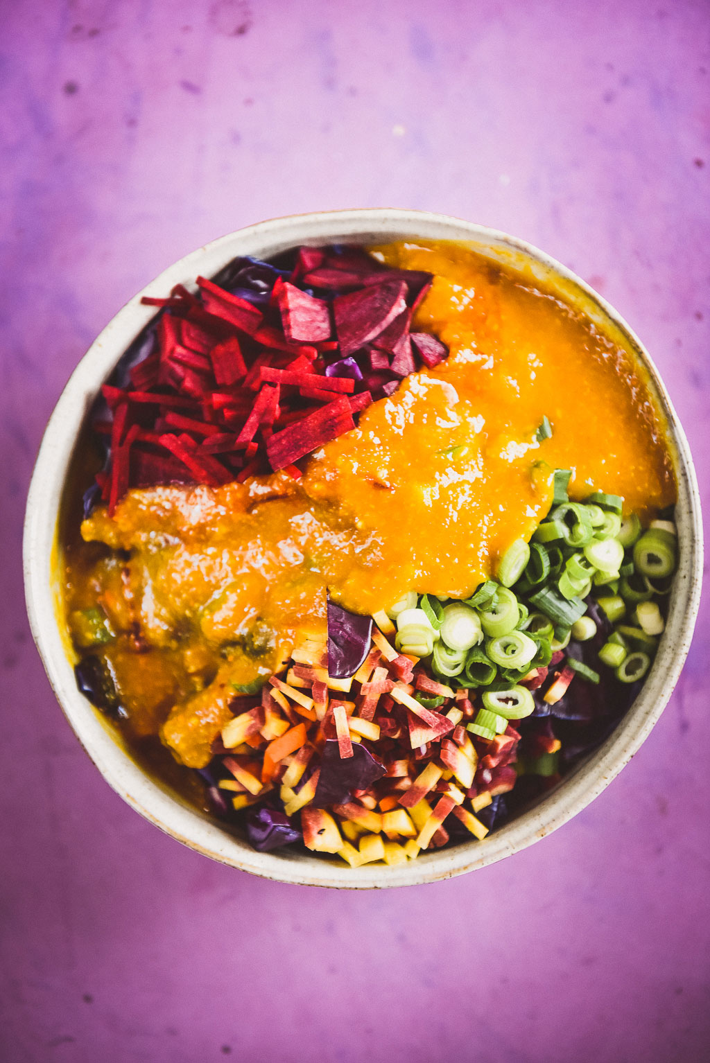 …ist einer meiner neuen Favoriten. Der Rotkohl ist deutlich fester in seiner Blattstruktur und hat auch einen intensiveren Geschmack, als sein Chinakohlkollege. Deshalb habe ich ihm auch einen Sparringspartner an die Seite gestellt der es in sich hat: Kurkuma.